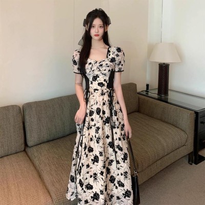 法式复古气质碎花连衣裙女夏季度假风休闲中长裙子